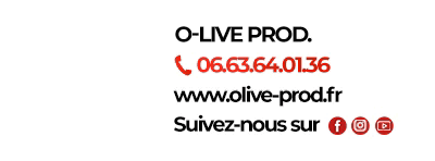 CONTACTEZ-NOUS Nom Adresse e-mail Message 14 + 14 = Envoi O-Live prod. – 7 rue de la Puèche – 13590 Meyreuil – Mail : contact@olive-prod.fr